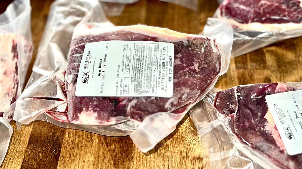 Our bison live their entire lives on the grasslands of our ranch in Northwest Kansas. This means they graze exclusively on natural pastures, enjoying their best life. The result? The highest quality bison meat available.